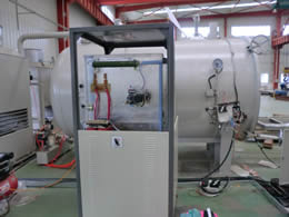 木材真空高頻干燥技術是一種新型的木材干燥方式,原理是采用高頻電場作為加熱源,電場均勻輻射在木材上,并且能穿透木材直接對其中的水分子進行加熱,再加上外部真空環境,能極大的降低水的沸點,從而使得木材在很短的時間內實現低溫烘干。干燥周期短,干燥成品好。
