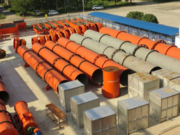 轉筒烘干機: 轉筒烘干機又叫回轉烘干機,主要用于選礦、建材、冶金、化工等部門烘干一定濕度的物料。烘干機設備對物料的適應性強,可以烘干各種物料,且設備操作簡單可靠,故得到普遍采用。