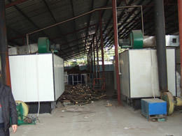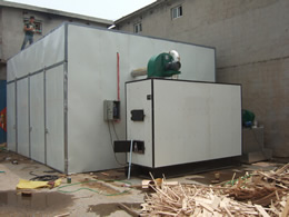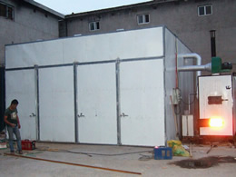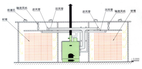 采用功能獨(dú)特的熱源發(fā)生裝置,保證有足夠的熱源供給干燥窯,干燥初期由于有大量熱源進(jìn)入室內(nèi),加大室內(nèi)濕度防止物料烘壞。