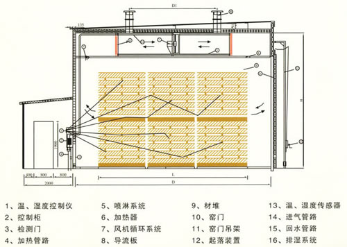 蒸汽式木材干燥窯,木材烘干窯,木材烘干房配置:鋁合金結(jié)構(gòu)窯體、窯門(提門裝置)、加熱系統(tǒng)、調(diào)濕系統(tǒng)、氣流循環(huán)系統(tǒng)、進排氣系統(tǒng)、檢測系統(tǒng)及控制系統(tǒng)等部分組成。