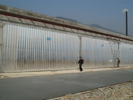 全鋁合金體木材干燥窯窯體采用鋁合金型材做骨架,外板為鋁合金瓦楞板,內(nèi)板為鋁合金壓型板,中間可根據(jù)用戶需要采用18-40容重玻璃絲棉保溫。型材與型材、型材與鋁板、鋁板與鋁板間的連接采用不銹鋼螺栓、鋁合金焊條、不銹鋼焊條焊接。窯體堅固耐用,保溫良好。