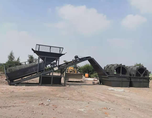鏟車將毛料鏟入上料斗,經傳送入轉篩,轉篩將毛料分離,沙子經出料口傳到沙,石子經出料口傳到石子 。