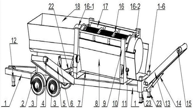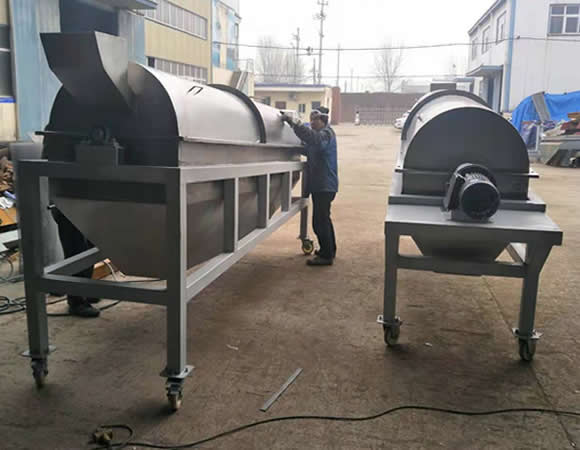移動式滾筒篩分機原料送入圓筒中之后,會被旋轉的圓筒帶起并落下,這種行為將一直反復地沿著圓筒運行著,細的顆粒通過篩孔并從導料槽排出,而粗的顆粒則一直向前運動直到從圓筒篩的尾部排出。